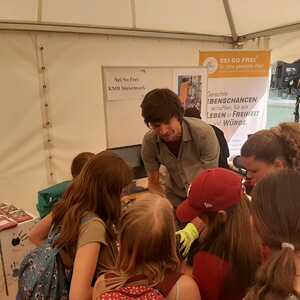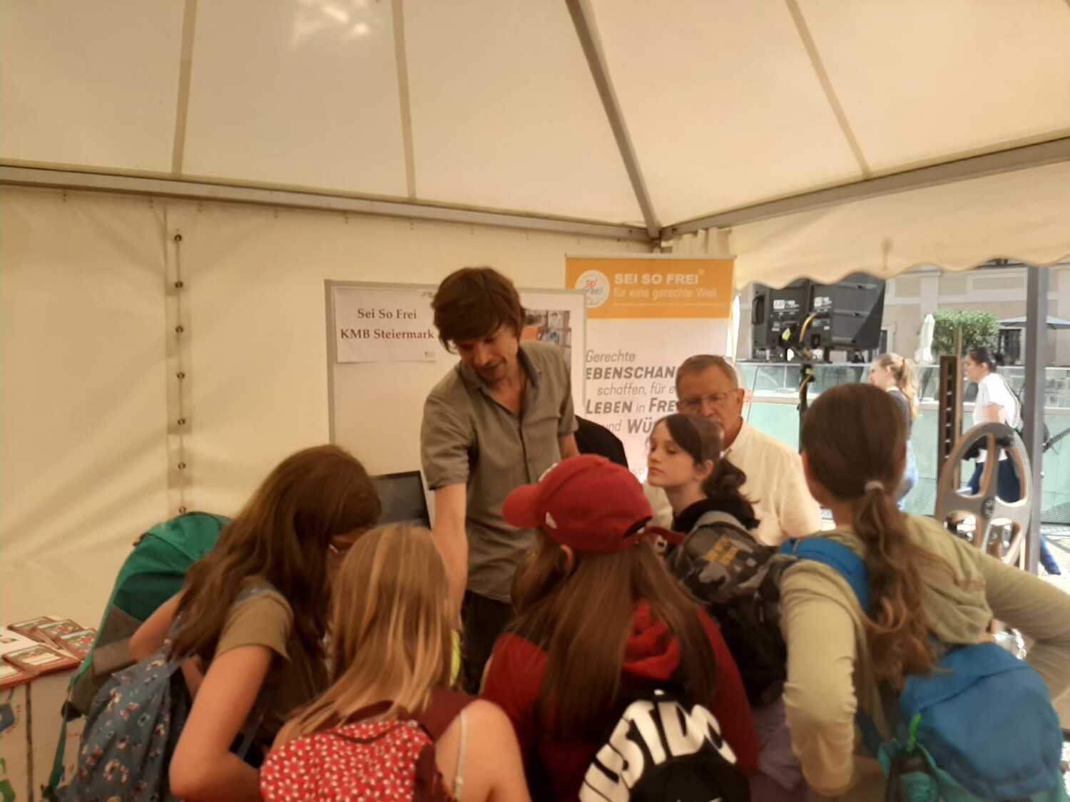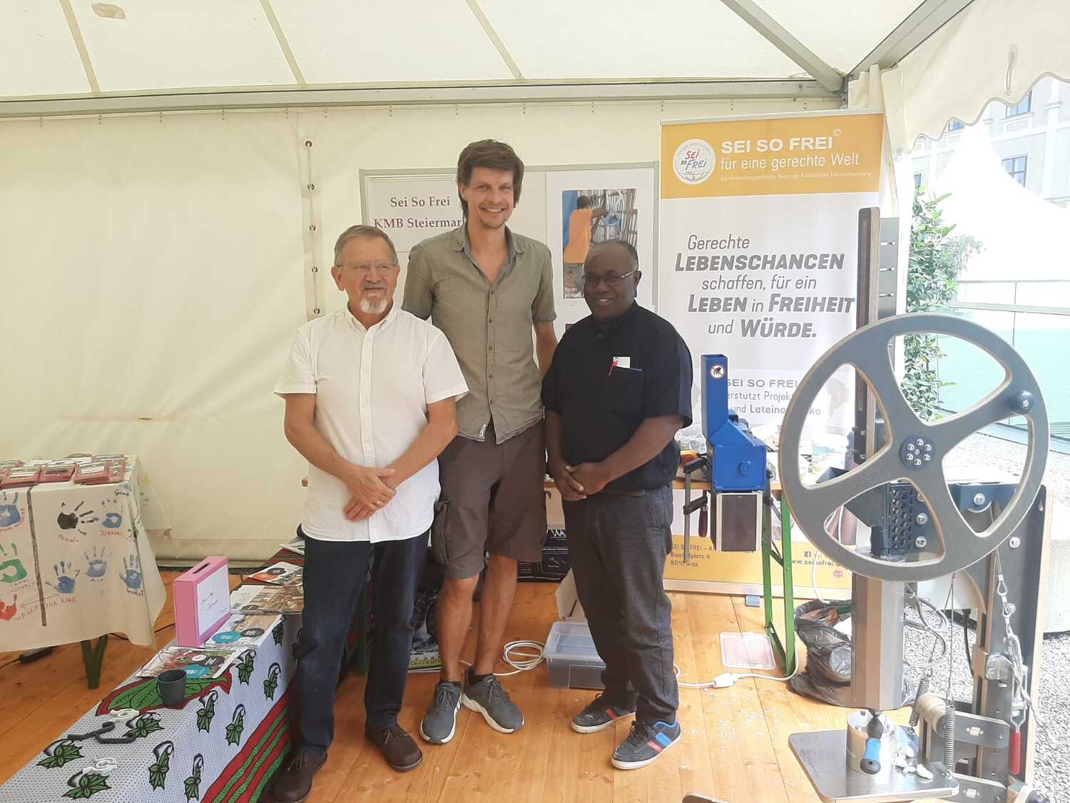 Zahlreiche Schulklassen und Besucher konnten das Plastikrecycling-Projekt im Nordwesten Tansanias hautnah erleben. Aus Plastikabfällen wurde mit der Maschine (Fa. Plasticpreneur) den Besuchern gezeigt, wie neue Produkte hergestellt werden können.