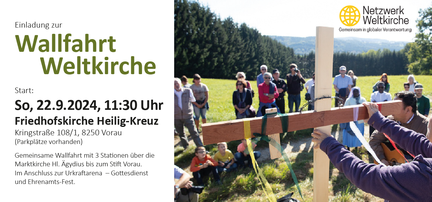 Im Gehen, Reden, Singen, Beten und Schweigen machen wir eine solidarische Weltkirche erfahrbar. Besonders freuen wir uns dabei über die Verstärkung aus Brasilien! Die Wallfahrt wird vom Netzwerk Weltkirche (Aktion Familienfasttag – Katholische Frauenbewegung, Aktion Sei so Frei – Katholische Männerbewegung, Dreikönigsaktion – Hilfswerk der Katholischen Jungschar, Missio – Päpstliche Missionswerke, Welthaus Diözese Graz-Seckau und Caritas-Auslandshilfe) sowie dem Stift Vorau mit dem Arbeitskreis Team Nächstenliebe von Vorau organisiert.